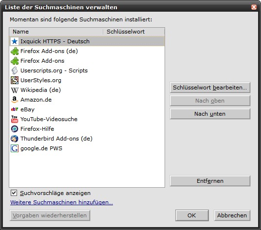 Ich habe gerade feststellen müssen das auf AMO scheinbar gar keine Suchmaschinen-Plugins mehr angeboten werden.