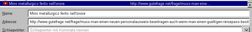 Wenn ich den FF schließe und neu starte, steht in dem Lesezeichen plötzlich eine falsche Adresse, nämlich die von