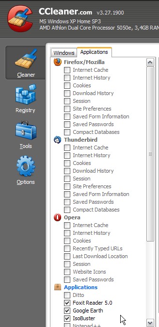 Man muss nun CCleaner nicht komplett ablehnen, ich nutze dies auch, allerdings sind sämtliche Haken beim Firefox entfernt, da dieser seine Reinigung am Besten selber durchführt.
