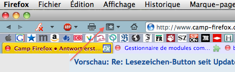 bis zum Update auf FF 19.0 hatte ich immer rechts von den TAB´s den Button für die Lesezeichen. Nach dem Update auf die neuste FF-Version ist das Symbol nun weg, und wird von den TAB´s überblendet oder nach rechts aus dem Fenster geschoben. Die Breite der TAB-Leiste kann ich aber auch nicht mit den Einstellungen verändern.