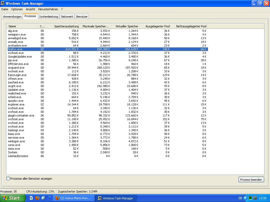 Seit den letzten Updates von Firefox auf 19.0.2 läuft mein virtueller Speicher über.