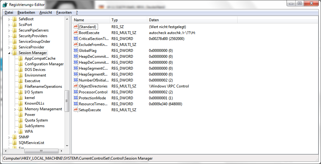 "HKEY_LOCAL_MACHINE\SYSTEM\CurrentControlSet\Control\Session Manager <- Wo finde ich das? Unter "Computer"? Hab Win 7