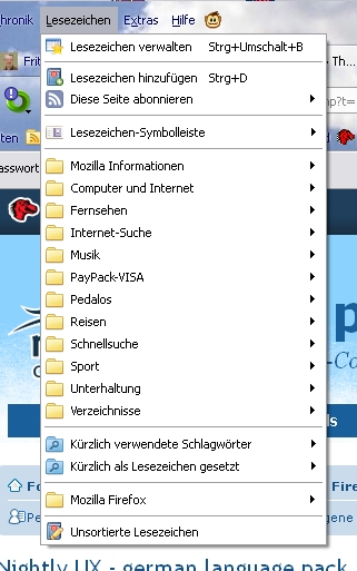 • Geht auch wahrscheinlich nicht anders - denn die sind im Sprachpaket schon übersetzt, in der Datei /browser/places/places.properties. Auch der Eintrag "Most Visited" ist dort übersetzt, siehe unter Lesezeichen-Symbolleiste im Menü Lesezeichen. Nur der Eintrag Getting Started, ebenfalls unter Lesezeichen-Symbolleiste im Menü kommt aus der bookmarks.html.