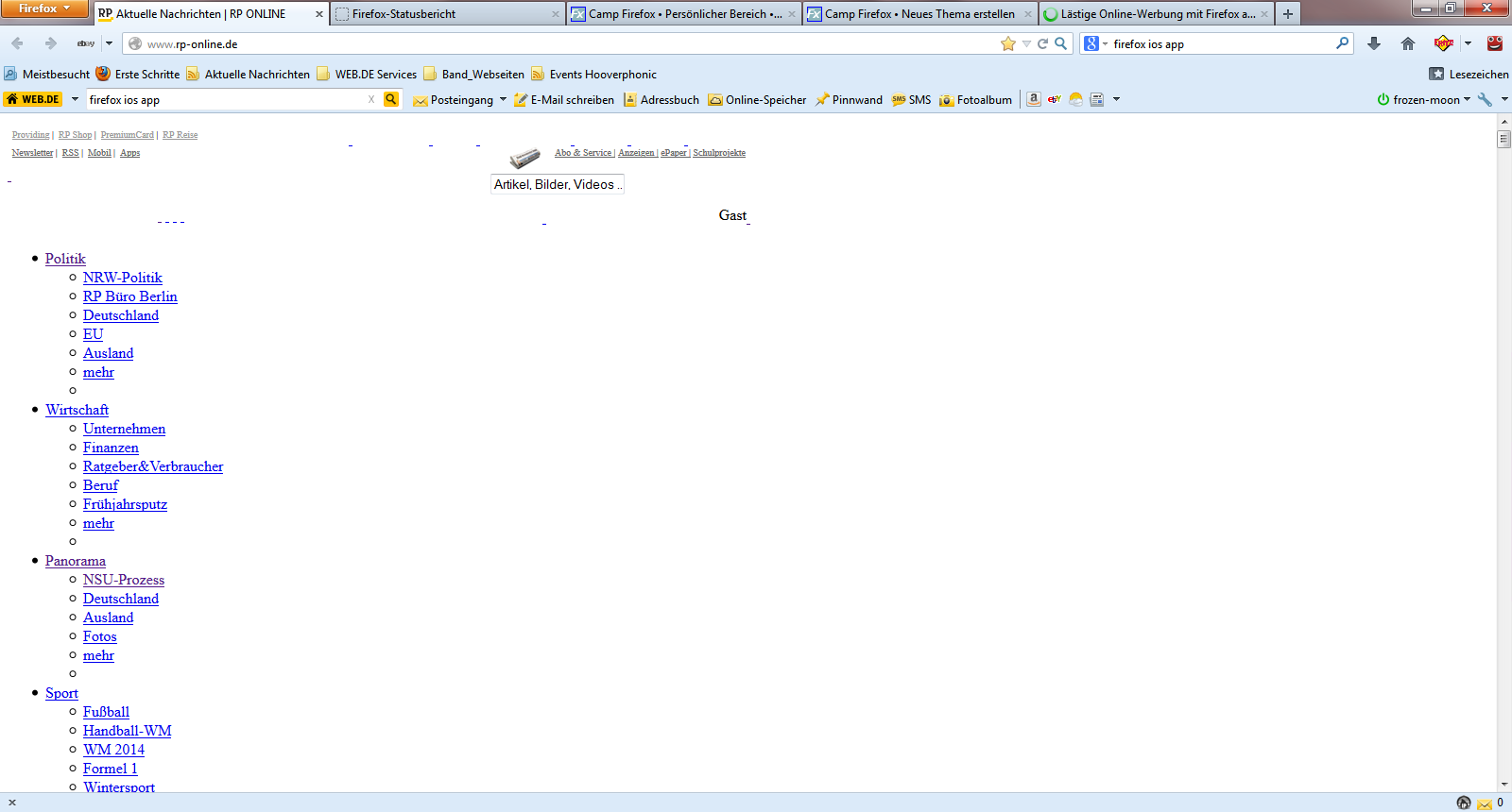 Eigentlich sieht die RP-Online.de Seite ganz anders aus. Nachdem ich das o.g. Programm benutzt habe, stellt sich die Seite nur noch wie ein Inhaltsverzeichnis dar. Das passiert auch bei manch anderen Seiten, aber nicht bei allen. Wie könnte ich das beheben? Wollte schon auf zurücksetzen gehen, aber ich habe dann Sorge, dass alle Lesezeichen, Plugins u.ä. weg sind.