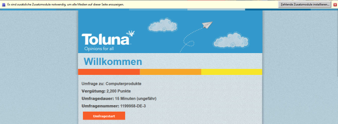 Ich treibe mich bei einigen Meinungsforschungsinstituten herum und treffe bei TOLUNA immer diese freundliche Anzeige