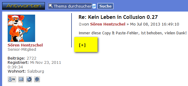 10. Juli 2013 um 17:28 #21 Zitat von Sören Hentzschel Die Leute klicken nicht auf Signaturen! Einspruch... ich nutze nur keine der verlinkten Dienste.. Außerdem sind Signaturen hier ausgeblendet... :mrgreen:[attachment=0]2013-07-10_172738.png[/attachment]