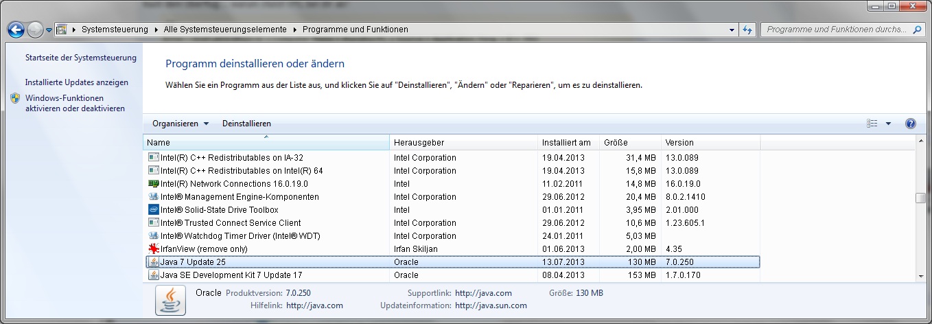 Kann nicht sein, unter Software gibt es nur die Version 7u25 (sieh Anhang)