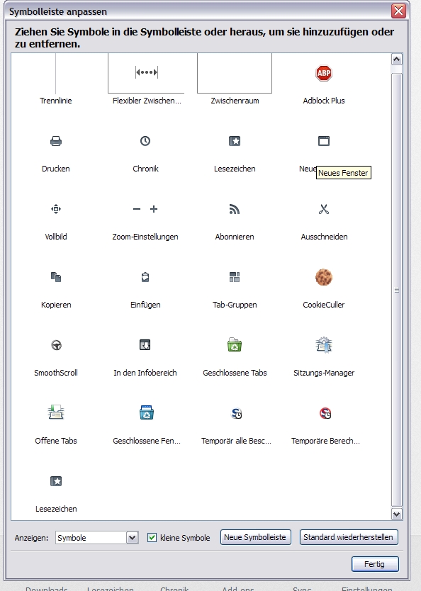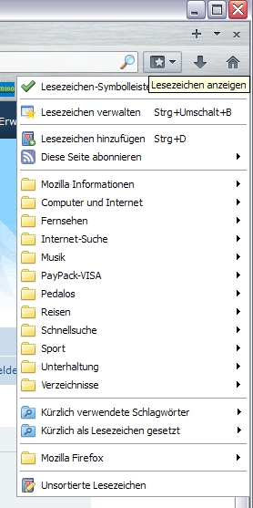 Seit der Aktualisierung auf FF23 ist in der Lesezeichensymbolleiste die Schaltfläche "Lesezeichen" nicht mehr sichtbar.