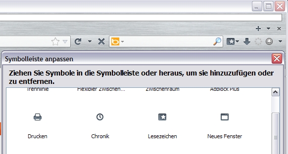 Wenn Anpassen ausgewählt ist, dann wird das Icon auf der Leiste angezeigt.