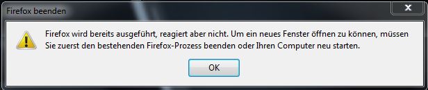 Wenn ich aber später FF erneut öffnen will, kommt die Meldung: