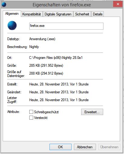 Wenn ich per Doppelklick auf den Firefox.exe klicke, dann öffnet sich Nightly korrekt, so wie es auch heute Mittag war undsein sollte.