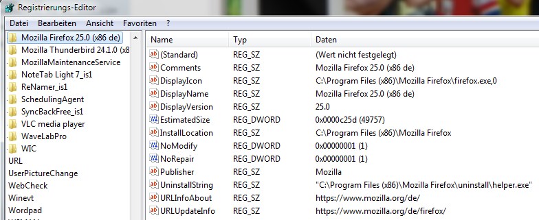 HKLM\SOFTWARE\WOW6432Node\Microsoft\Windows\CurrentVersion\Uninstall\Mozilla Firefox 25.0 (x86 de)