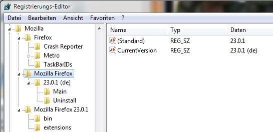 Im Thema "firefox und windows 8 registry" ging es um die Versionsinfo von Firefox in der Registry. Endor antwortete in https://www.camp-firefox.de/forum/viewtopi…=888116#p888116 mit dem Pfad in der Registry von Windows 7: HKEY_CURRENT_USER\Software\Mozilla\Mozilla Firefox.