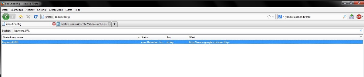 Über about:config finde ich den Eintrag und kann ihn verändern/zurücksetzen/löschen. Aber beim nächsten Starten von FF ist die ungewollte Yahoo-Seite wieder da.