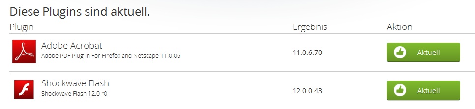 Wenn das der Plugin-Check von Mozilla ist: dem traue ich keinen Millimeter weit, da er schon öfter veraltete Versionen als aktuell angesehen hat.