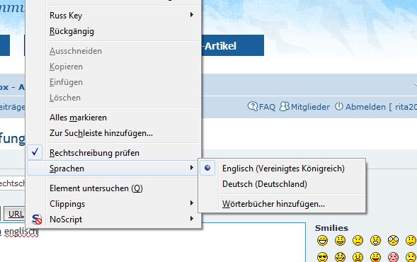 gib mal in die Adresszeile den Text about:config ein. Bestätige die Warnung, die dann kommt, und im Einstellungsfenster gibst du den Text spellchecker.dictionary in das Feld Filter: ein. Wenn die Einstellung vorhanden ist und den Wert en-US hat, klicke doppelt auf die Einstellung und ändere en-US in de. Wenn der Text nicht vorhanden ist, lege die Einstellung spellchecker.dictionary an. Klicke dazu mit der rechten Maustaste, wähle dann Neu --> String, gib anschließend den Text spellchcecker.dictionary in das Feld ein und in das anschließende Feld de als Wert.