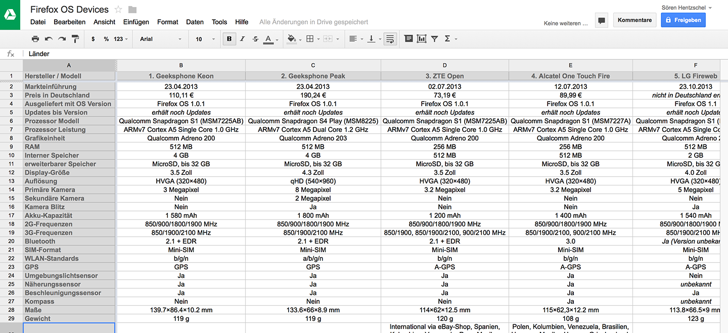 Ich bin gerade dabei, eine Übersicht über Firefox OS Smartphones zu erstellen, diese Übersicht wird auch Geräte enthalten, deren Spezifikationen noch gar nicht offiziell angekündigt worden sind, wie das ZTE Open C oder den Nachfolger des Alcatel One Touch Fire, zu dem ich auch bereits Informationen herausgefunden habe.