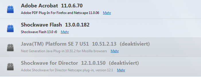 Hier stand und steht Java auch noch in den Plugins gelistet, wenn ich es im Browser deaktiviert habe. Verschwunden ist es nur nach einer Deinstallation von Java.