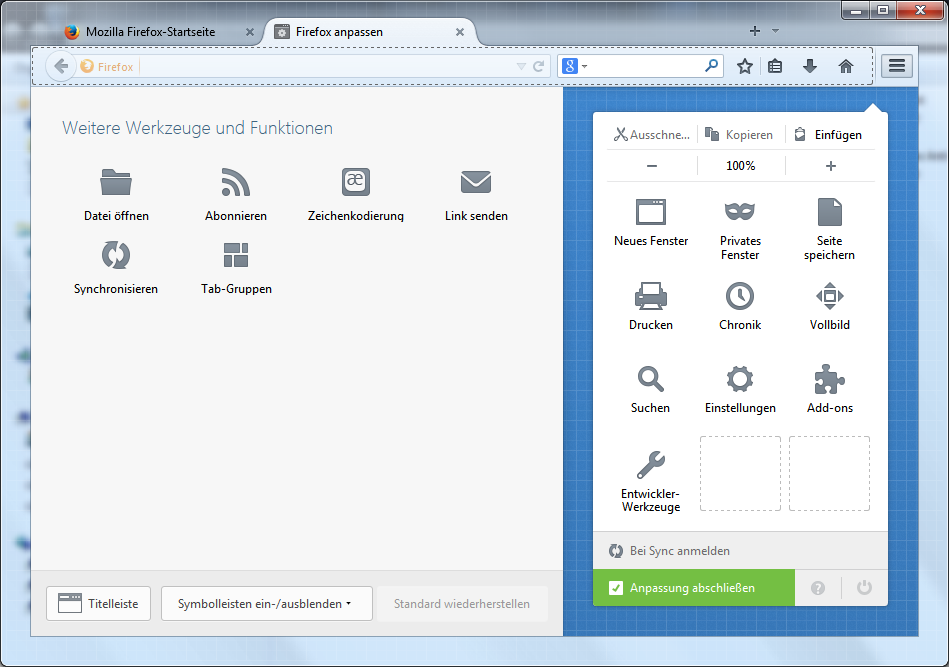 firefox 29.0.1 Symbolleiste