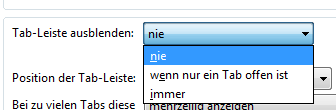 Ist völliger Verzicht auf den Tabreiter nicht mehr möglich? Bisher genügte es, "Statt einem neuen Fenster ein neues Tab laden" nicht zu aktivieren.