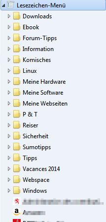 Ich möchte , dass die einzelnen Lesezeichen unter den Ordnern mit den Lesezeichen stehen.