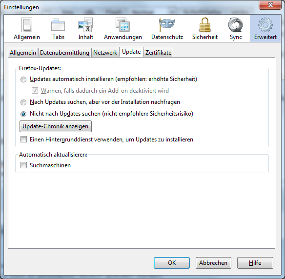 Firefox hier aktualisiert sich nicht ohne mein Wissen.