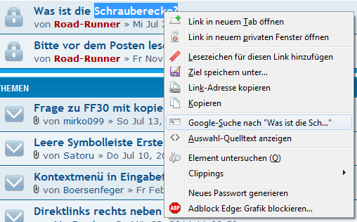 Frage zu FF30 mit kopierten Text ->Google-Suche nach...