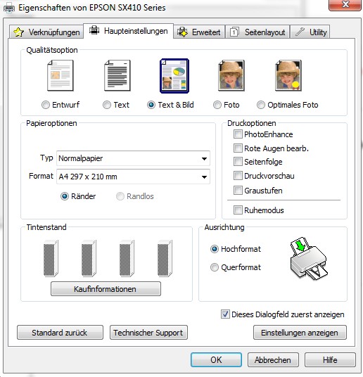 Bei meinem Epson-Drucker sehe ich dann folgendes...