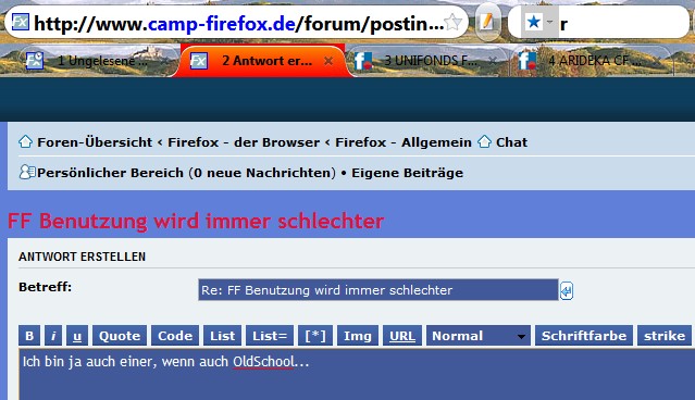 2. man findest es nicht gut und passt das Aussehen von Firefox per Erweiterung oder CSS-Code an seine Wünsche an (siehe Altes Design wieder herstellen)
