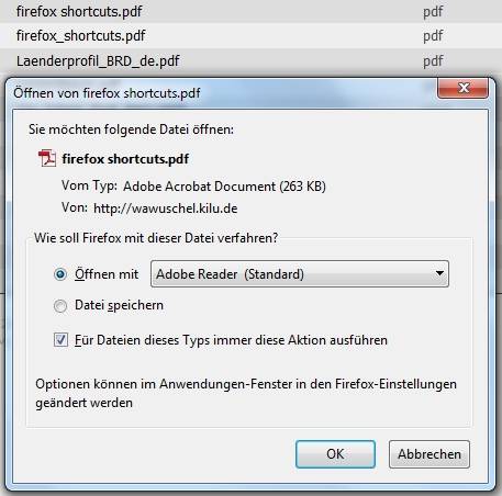 Adobe Acrobat 11.0.9.29 Einstellen [Immer aktivieren]Für Dateien dieses Typs immer diese Aktion ausführen (haken setzen) [OK]