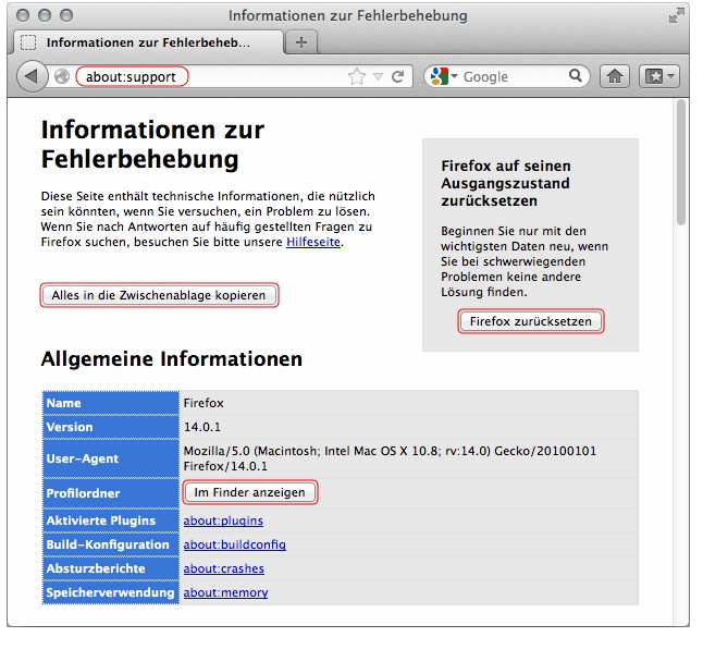 zurcksetzen von Firefox unter MAC OS 10.5.8