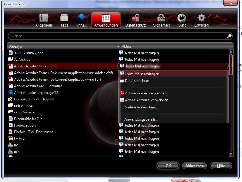 Dieser Eintrag steht immer auf "Datei speichern", den ändere ich dann in "Adobe Acrobat in Firefox öffnen.