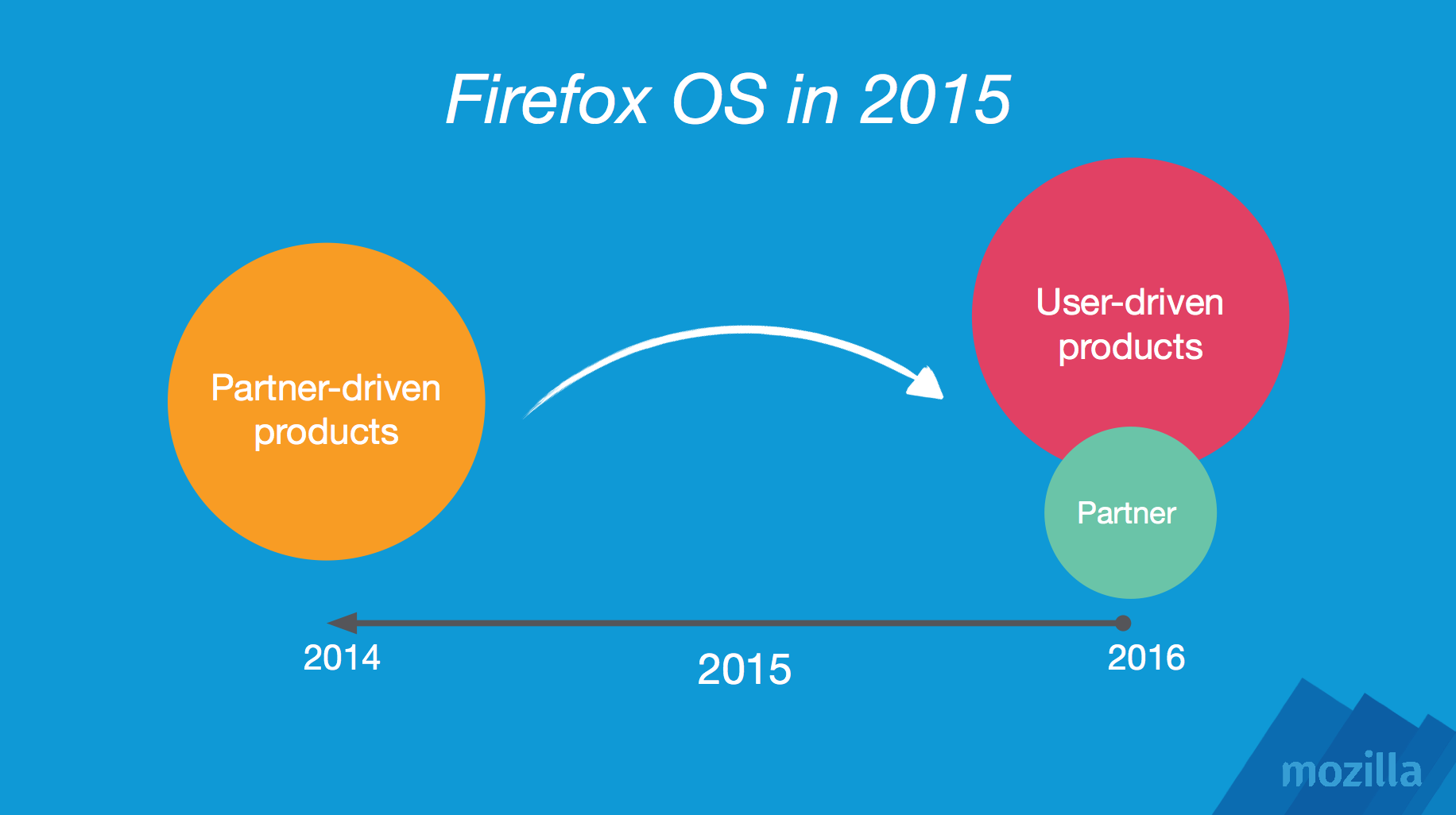 Da brauchst du dir keine Sorgen zu machen. Bisher wurden alle Erwartungen von Firefox OS mindestens erfüllt, wenn nicht gar übertroffen. Firefox OS wird jetzt sogar auf Fernseher, Set-Top-Boxen, HDMI Streaming-Adapter, Monitore und Wearables kommen, Connected Home und Connected Cars sind ebenfalls neue Bereiche von Firefox OS, insofern sieht es glaube ich ziemlich gut aus, was das halten können betrifft. Und Firefox OS ist im Wandel, das Jahr 2015 wird quasi ein Jahr des Übergangs. Ich häng mal ein Bild aus einer Präsentation an, um zu verdeutlichen, was ich meine.