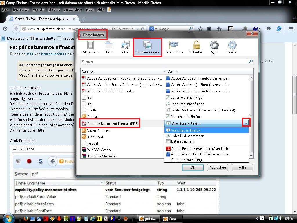 pdf dokumente öffnet sich nicht direkt im Firefox