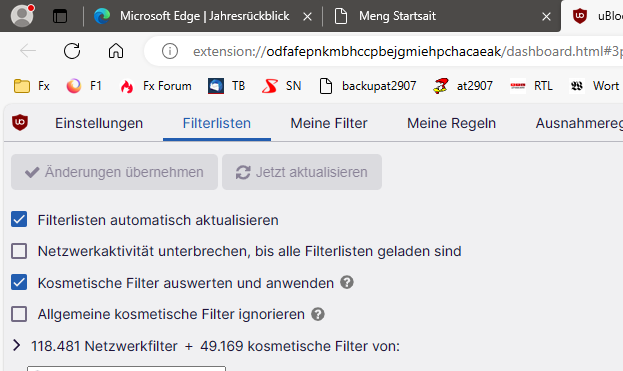 Das mit den Tests oder A:B-Vergleiche sind schon einkalkuliert. Bei den meisten half es, den Cache von uBlock zu leeren und alle Listen zu aktualisieren. Und es ist fast immer eine bestimmte Gruppe Nutzer betroffen.