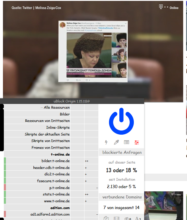 Erstelle halt eine Freistellung in uBlock origin für t-online...
