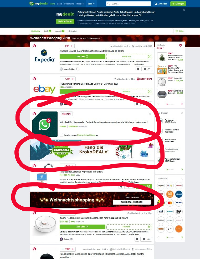 Da bin ich raus, sonst führt das wieder zur Diskussion was Werbung ist und was nicht. In meinen Augen referenzieren die eingekreisten Anzeigen auf mydealz-eigene Aktionen. Mir wäre der Aufwand zu hoch das jetzt manuell aus dem Informationsstrom rauszufischen. Ich bin da schneller drüber gescrollt, als mir erst ewig wieder einen neuen Filter anzulegen bzw. zu suchen. Außerdem ist das statisch, im Lesefluss und für mich nicht aufdringlich, ergo: no problemo.