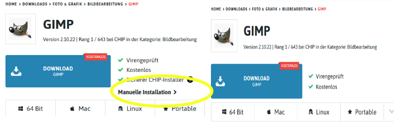 • abgesehen davon, dass man generell von chip.de nicht runter lädt wird doch der manuelle Download benutzt und nicht der Installer. Dieser wird nämlich von uBlock Origin durch die default Filterlisten schon ausgeblendet.