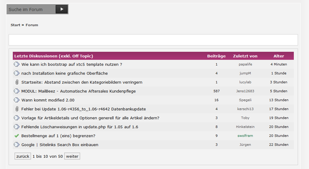seit dem ich dieses addOn installiert habe, sehe ich die Forenbeiträge im modefied Forum auf der Startseite nicht mehr.