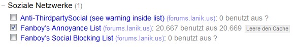 welche filter muss ich denn auswählen wenn ich die ganzen facebook buttons (nicht auf fb direkt) blocken will,bzw gibt es filter,die es verhindern,dass ich von gewissen seiten verfolgt werden kann? dann könnte ich mir ein addon wie ghostery oder disconnect nämlich sparen