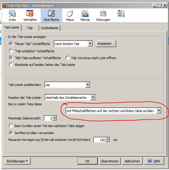 nachdem ich mit dem Update auf FF 36.0.4 Probleme hatte, habe ich mich nun neuerlich entschlossen, es mal mit dem neuesten Update 37.0.1 zu versuchen. Gleiches Problem: das AddOn "TabMixPlus" funktioniert nicht mehr richtig. In der Tab Leiste werden an den Seiten keine Pfeiltasten zum Blättern angezeigt, beim Anwählen eines Tabs bleibt die Adresszeile leer und der Zurückpfeil hat auch keine Wirkung mehr?! Im abgesicherten Modus erscheinen die Pfeiltasten rechts und links der Tab Zeile.