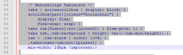 Mir geht es ja auch so, ich nutze zwar von BrokenHeart den CSS.Code für mehrzeilige Tabreihen, aber wann kommt es schon mal vor, dass die zweite geöffnet wird. Büssen schreibt gerade darüber, alles zu wuselig, und so ist auch meine Meinung. Ich hatte nur darüber nachgedacht, wenn es jetzt diese Möglichkeit der Begrenzung geben würde, dann eröffnen sich einem alle Möglichkeiten (bessere Übersicht) des Einsatzes.