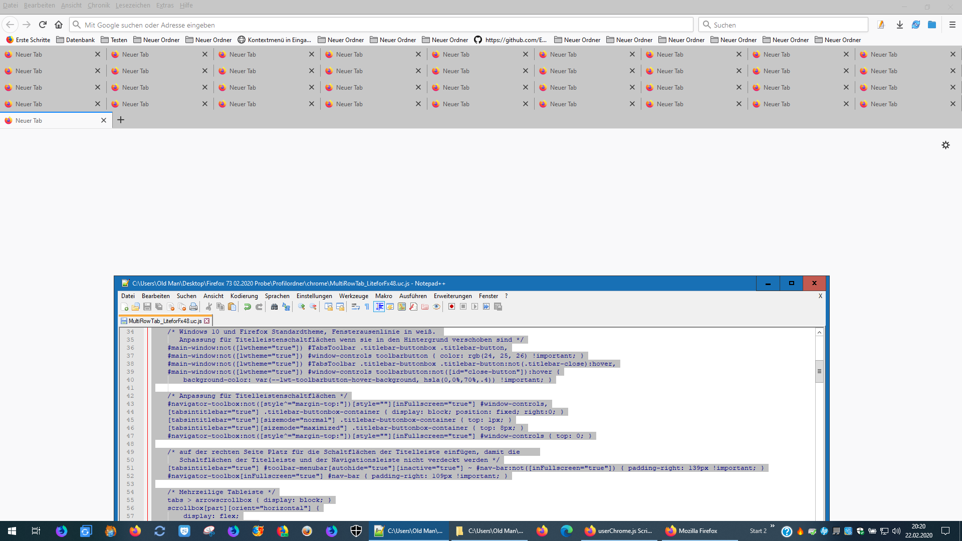 Man kann das bestimmt auch im Script einfügen, aber ich habe es mal als zusätzlichen Code in der userChrome.css gemacht: