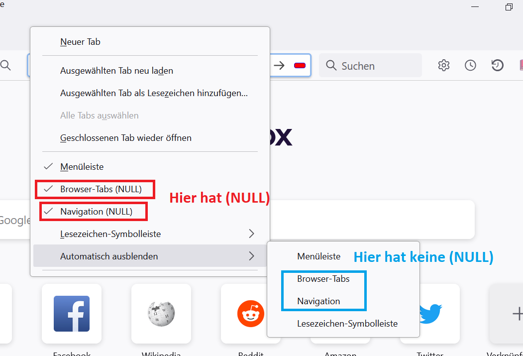 kann jemand mir sagen, wieso kommt (NULL) Beschreibung (bis Firefox 115.13.0 ESR war normal aber mit 128 ESR kommt (NULL)).