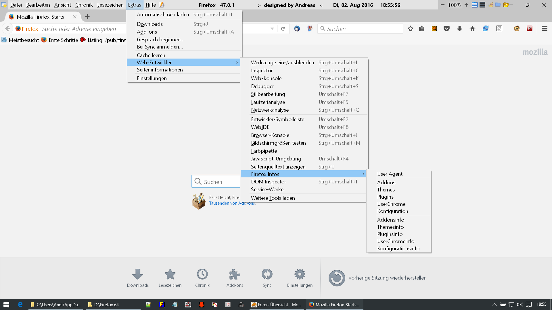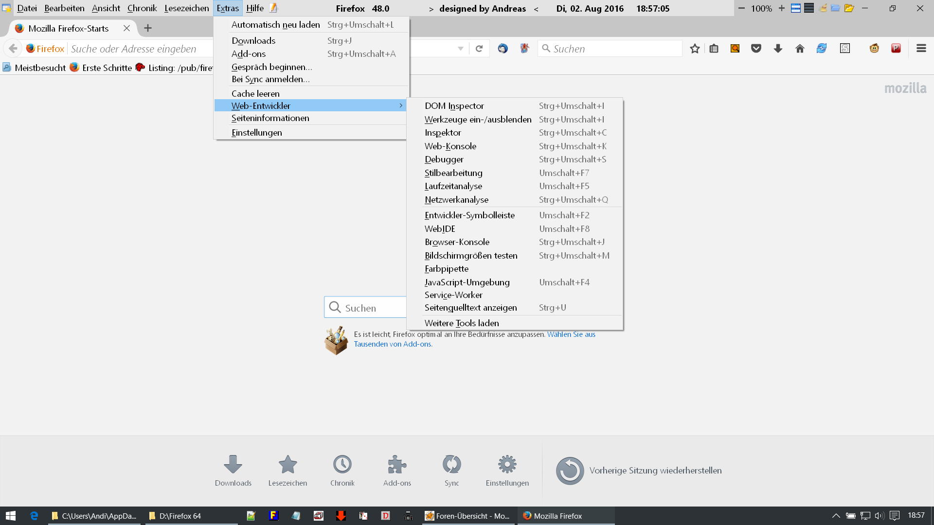 Mir fehlt der Eintrag: Firefox Infos unter Web-Entwickler in allen Profilen seit Fx 48.
