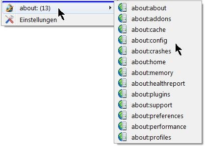 • .... Hinzu kam, dass im ExtraConfigMenü über den Eintrag about (unterer Teil) und Klick auf about:config sich auch nichts rührte.