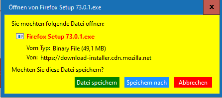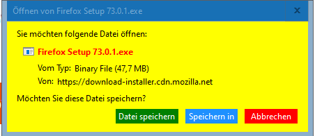 Aber Büssen, das sind doch zwei Paar Schuhe. Ist dir noch nie aufgefallen (das bezweifele ich mal!), wenn du z.B. eine ausführbare Datei (z.B. *.exe) downloaden willst, dir dann das Fenster RE: userChrome.js Scripte für den Fuchs (Diskussion) angezeigt wird. Beabsichtigst du z.B. Bilder *.svg, *.jpg, usw., dann wird dir das Fenster RE: userChrome.js Scripte für den Fuchs (Diskussion) angeboten, wo du dann entscheiden kannst, was mit der Datei passieren soll. Bei den Bilddateien z.B. muss es sich aber um echte Downloads handeln, also nicht copy and paste.