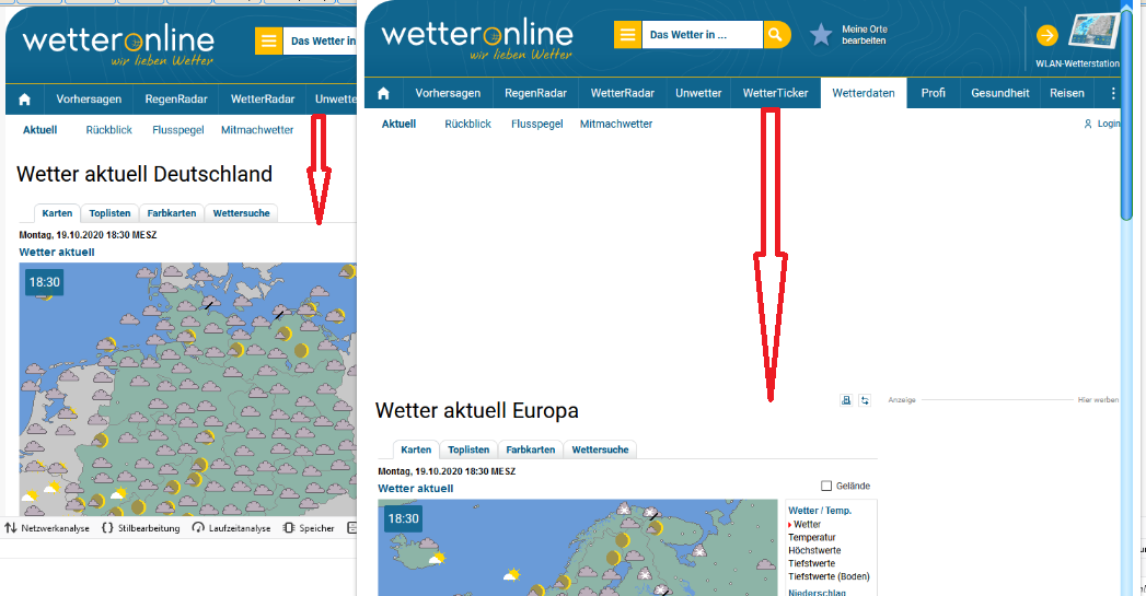 Es geht um das Script Wetterfuchs.uc.js. , in dem ich gern diese Seite einrichten möchte. Nun gefällt mir aber überhaupt nicht, dass, wenn ich die Seite über das Script aufrufe, diese oben einen sehr breiten weißen Streifen zeigt, was im Original der Website (links) so nicht auftritt. Gibt es dafür eine Lösung?