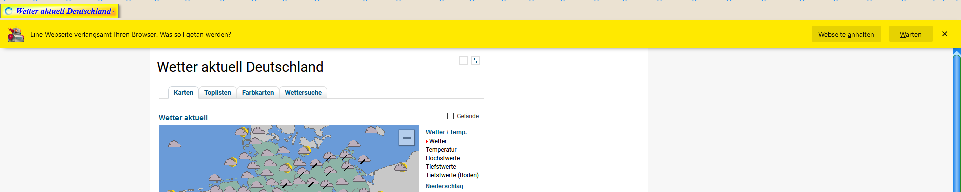Ja, Werbung zulassen. Die wird sicherlich durch deinen Adblocker unterdrückt, ich nehme mal an uBlock Origin. Ich habe hier das Skript für Wetterkontor.de eingerichtet. Dafür hat Endor diverse Regelungen getroffen.