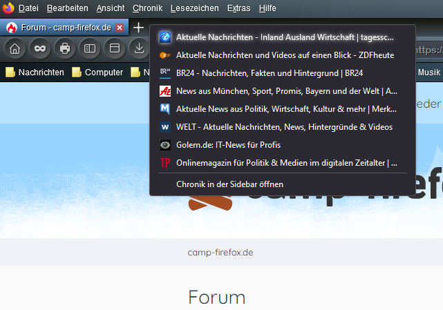 Im Kontextmenü ganz unten ist ja der Eintrag Chronik in der Sidebar öffnen erscheint hier nicht!